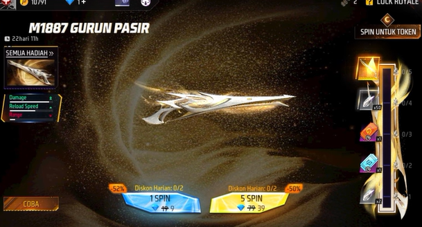 Senjata ini bisa didapatkan melalui event spesial di Free Fire, yaitu Lucky Royale. Untuk masuk ke event ini, ikuti langkah berikut: