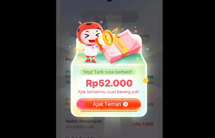 Dalam event ajak teman, sistem hadiah dibagi menjadi beberapa tahap. Saat teman mendaftar melalui link undangan, pengguna akan mendapatkan hadiah awal. Ketika teman berhasil mendapatkan limit, hadiah tambahan akan diberikan. Puncaknya adalah saat teman menyelesaikan transaksi pertama, hadiah terbesar akan langsung masuk sebagai saldo tunai.